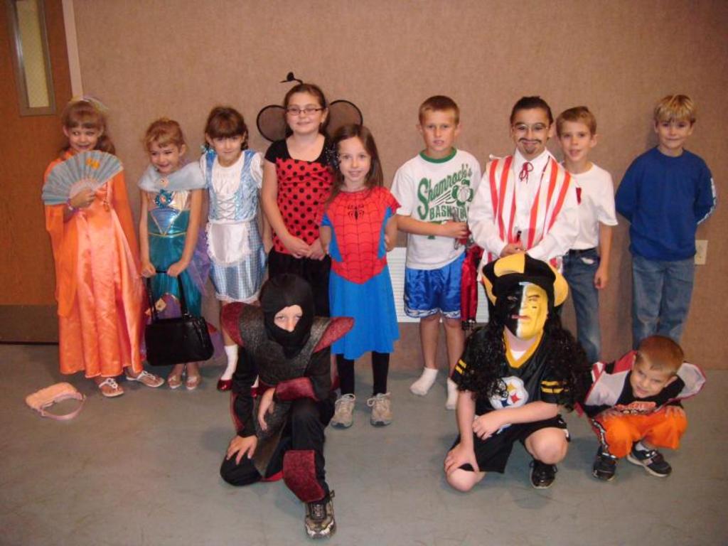 The previous Sunday School Class combined with the current class had a costume party with pizza and games!